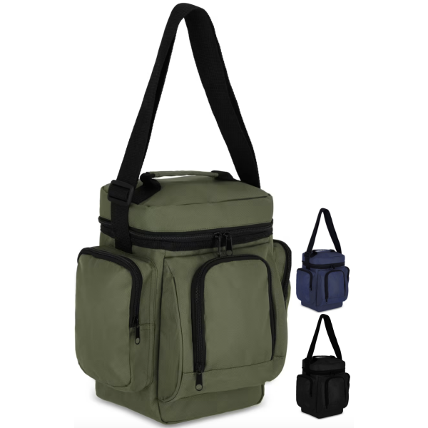 Naast het ruime hoofdvak heeft de tas twee zijvakken met rits en een extra voorvak voor kleine spullen. Dankzij de verstelbare schouderriem en het handvat bovenop kies je zelf hoe je de koeltas draagt – handig en comfortabel in elke situatie.