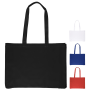 Stevige schoudertas met lange hengsels, gemaakt van gecertificeerd Oeko-tex 100 standaard katoen, 140 grams. Voorzien van het Oeko-tex label. Oeko-tex is een internationale certificering voor textielproducten en garandeert dat de tas geen schadelijke stoffen bevat. Ideale schoudertas, in meerdere kleuren leverbaar.. Formaat 40 x 35 x 10 cm. Door de diepte van 10 cm is deze tas extra ruim. De hengsels hebben een cross stitch bevestiging voor extra stevigheid. Een groot drukformaat zorgt voor de perfecte plaatsing van uw reclame. U kunt gebruik maken van verschillende druktechnieken. Weergegeven prijs is de voordelige zeefdrukprijs. Transferdruk en Full colour druk ook mogelijk.